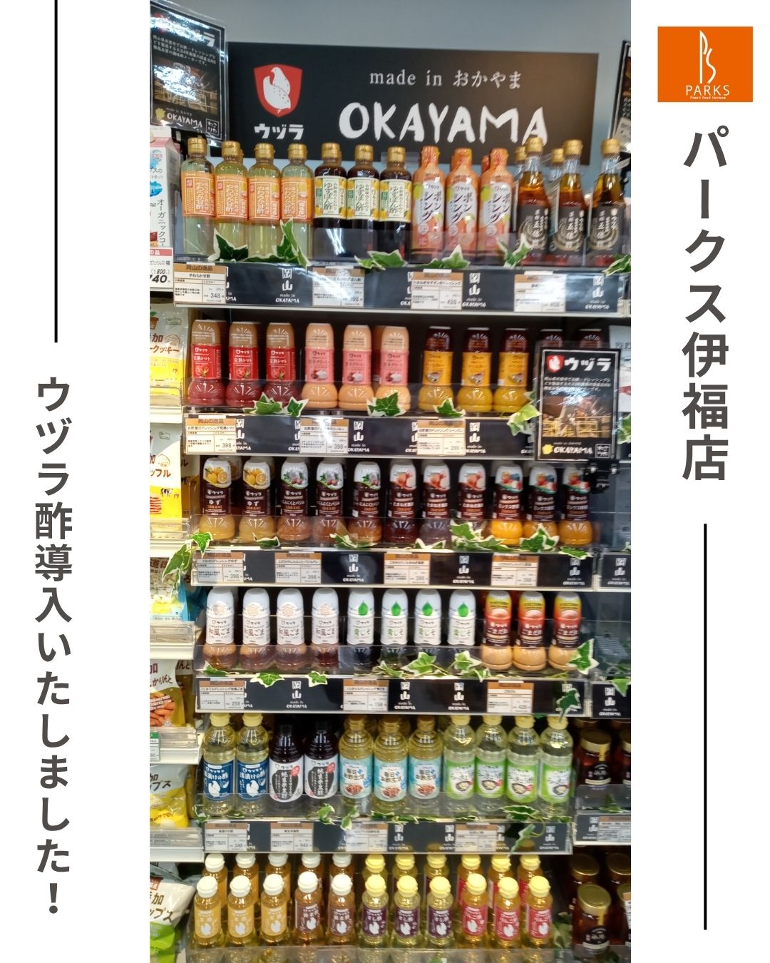 お知らせ2026年4月28日パークス伊福店に「ウズラ酢」導入いたしました また、ひとつ仲間が増えました! パークス伊福店でウヅラ酢導入いたしました! じわじわ広がるウズラ酢の輪少量でもしっかり風味があり普段の料理が少し楽しくなる調味料です!気になる方は、ぜひ手に取ってみてください